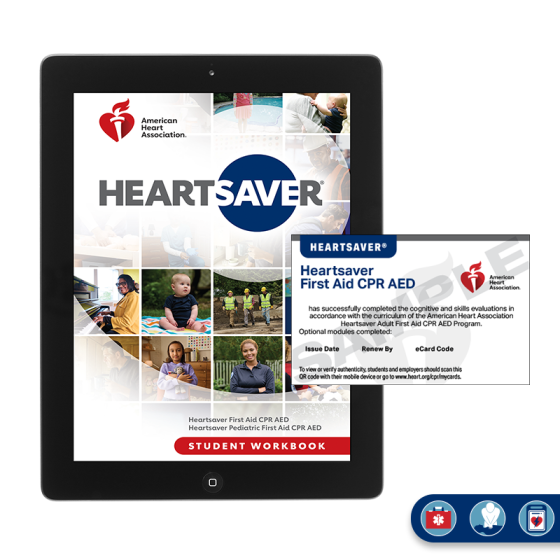 The Heartsaver® First Aid CPR AED Digital Bundle is a convenient, cost-savings student bundle that includes the Heartsaver First Aid CPR AED eBook and eCard. A Training Center Security ID is required for purchase.