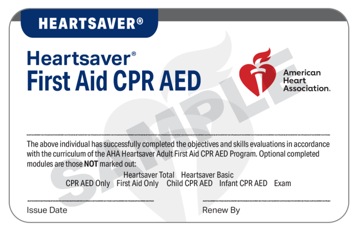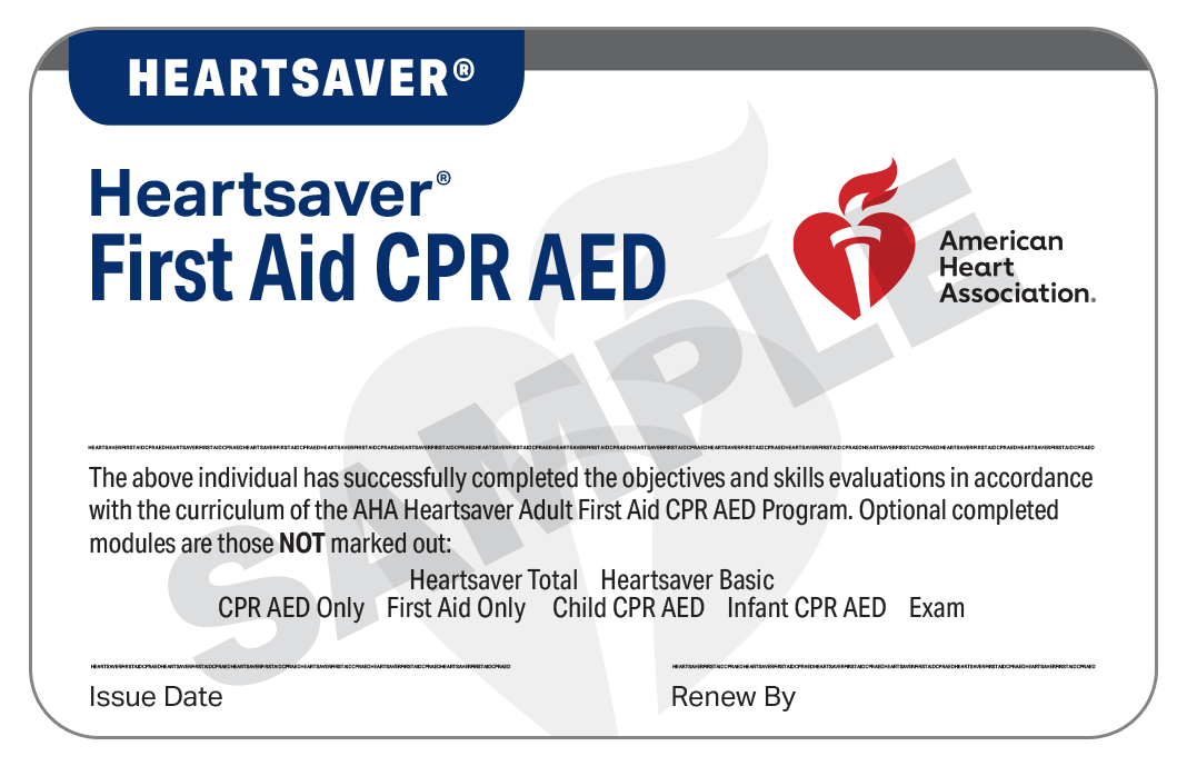 Students who successfully complete all the requirements of the classroom-based or blended learning Heartsaver First Aid CPR AED, Heartsaver CPR AED, or Heartsaver First Aid Courses.