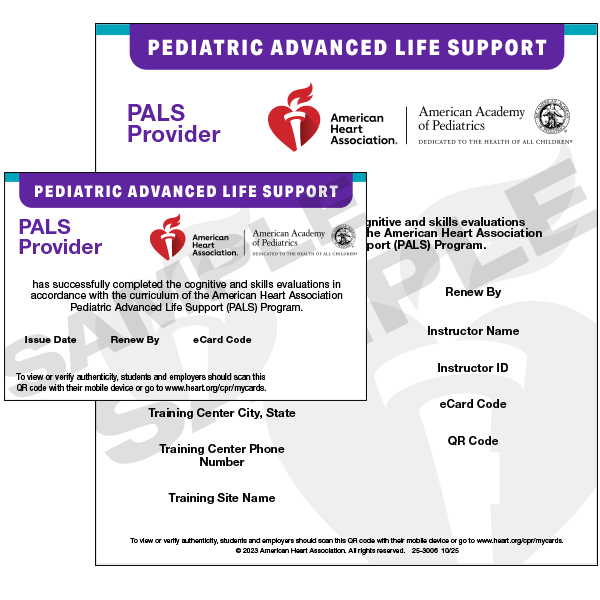 The PALS Provider eCard should be issued by Instructors to students who have completed PALS courses.